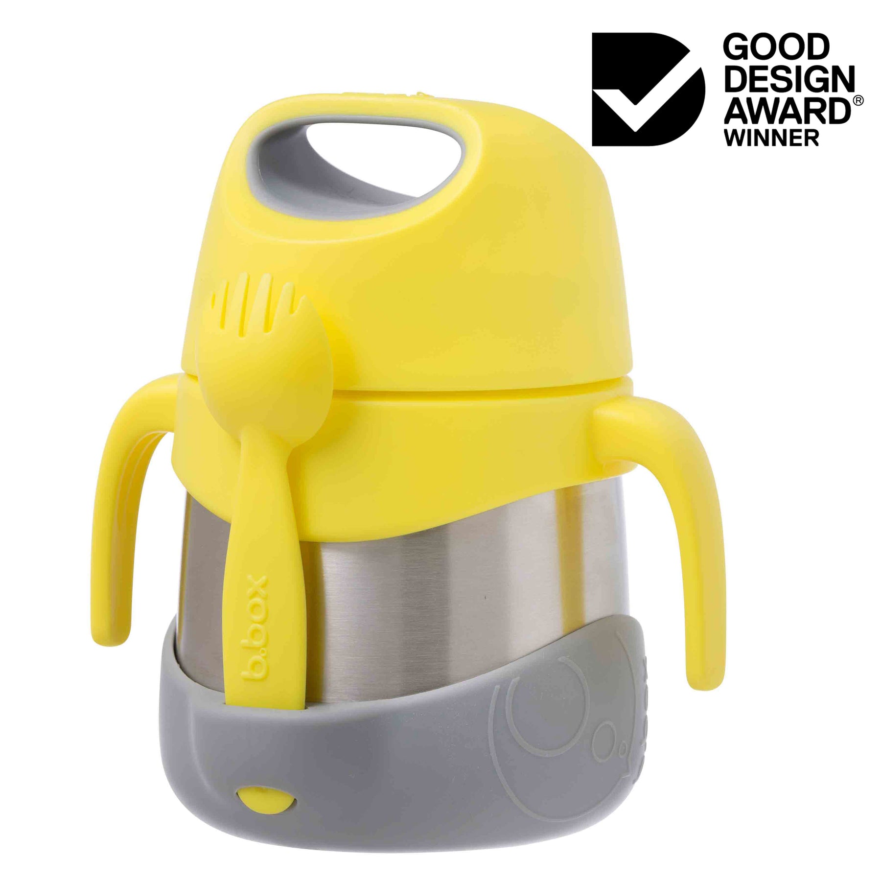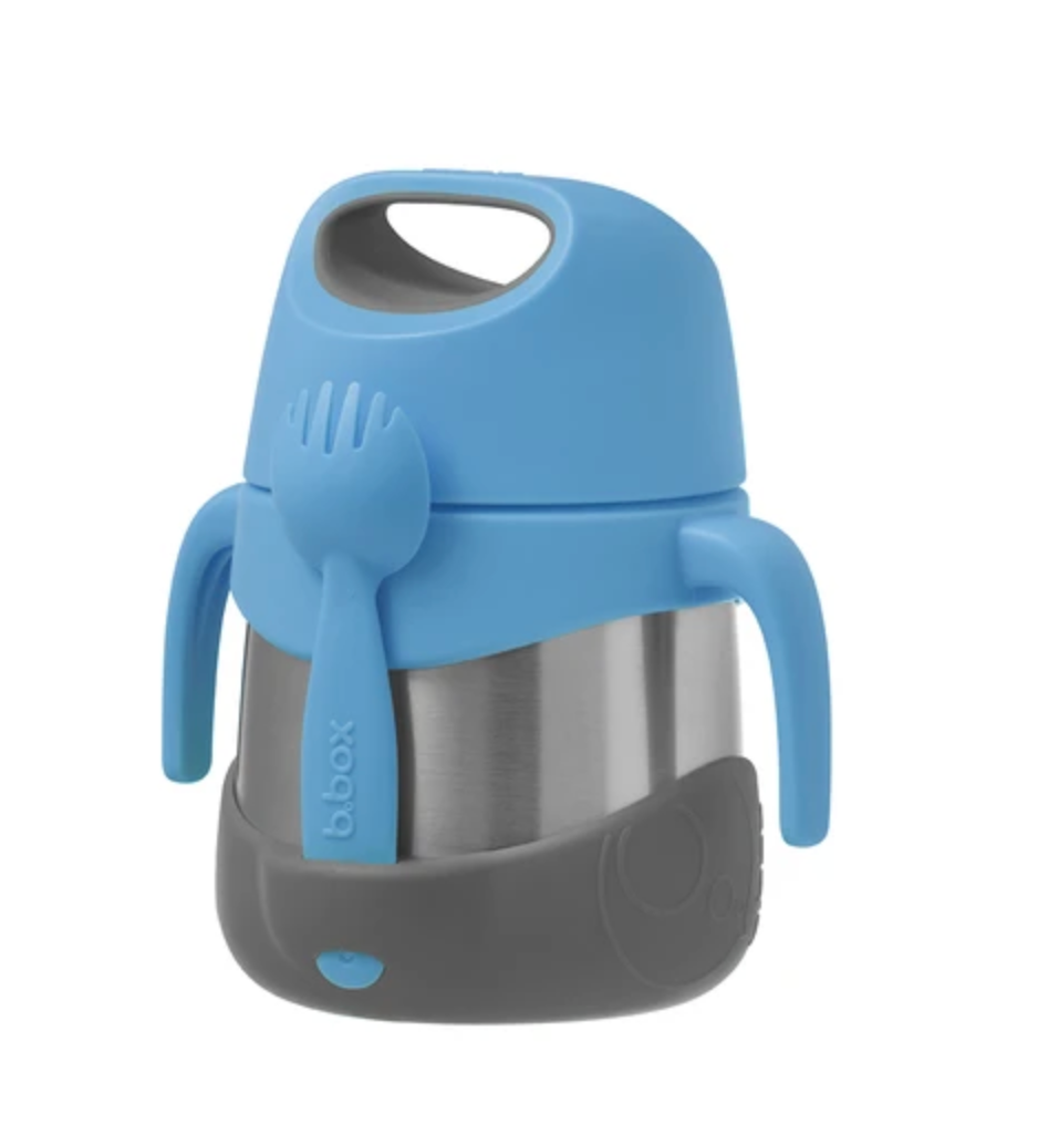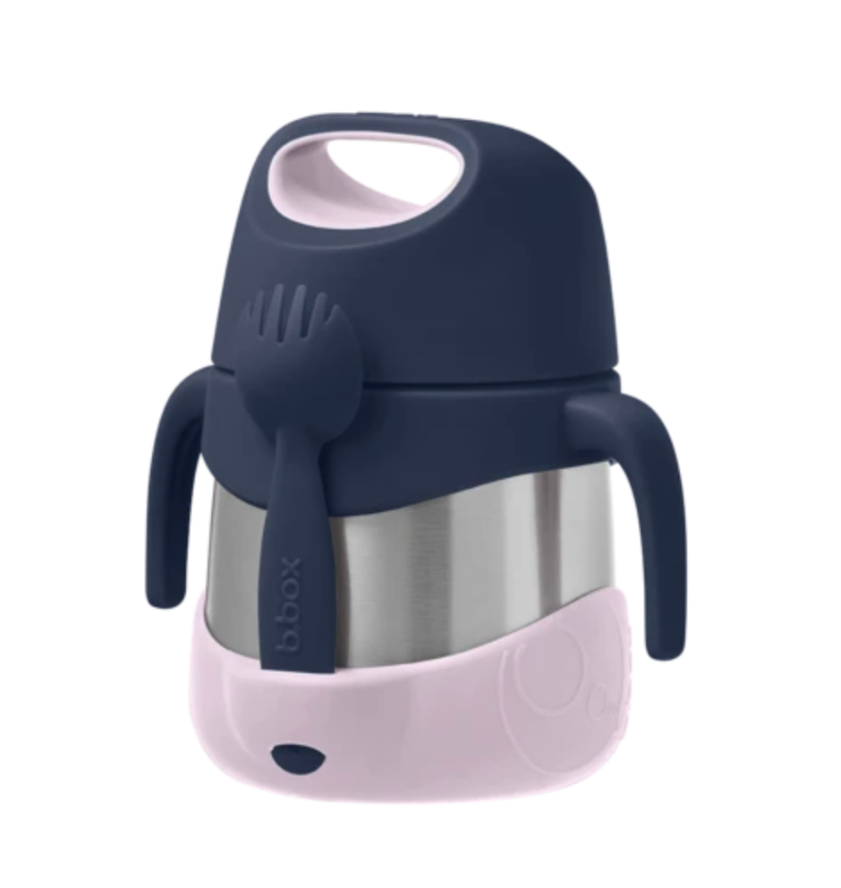 Keeps food at the perfect temperature all day, whether kids prefer warm pasta for lunch or cold refreshing fruit and yoghurt.  Great for kinder and school with a 335ml capacity.  Comes with spork utensil that tucks away into custom bumper. Easy grip handles give kids leverage to open the jar easily, encouraging independence. Removable arms and bumper ensure the food jar can be tailored for older kids too. Unique stop feature stops parents from over-tightening the lid. Dishwasher safe.  When using to keep food warm - for best performance fill the stainless steel base with hot water for a few minutes to warm it before pouring water out - and filling with delicious hot food.